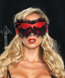 Leg Avenue Antifaz de Satén Rojo con Encaje Negro Ecológico