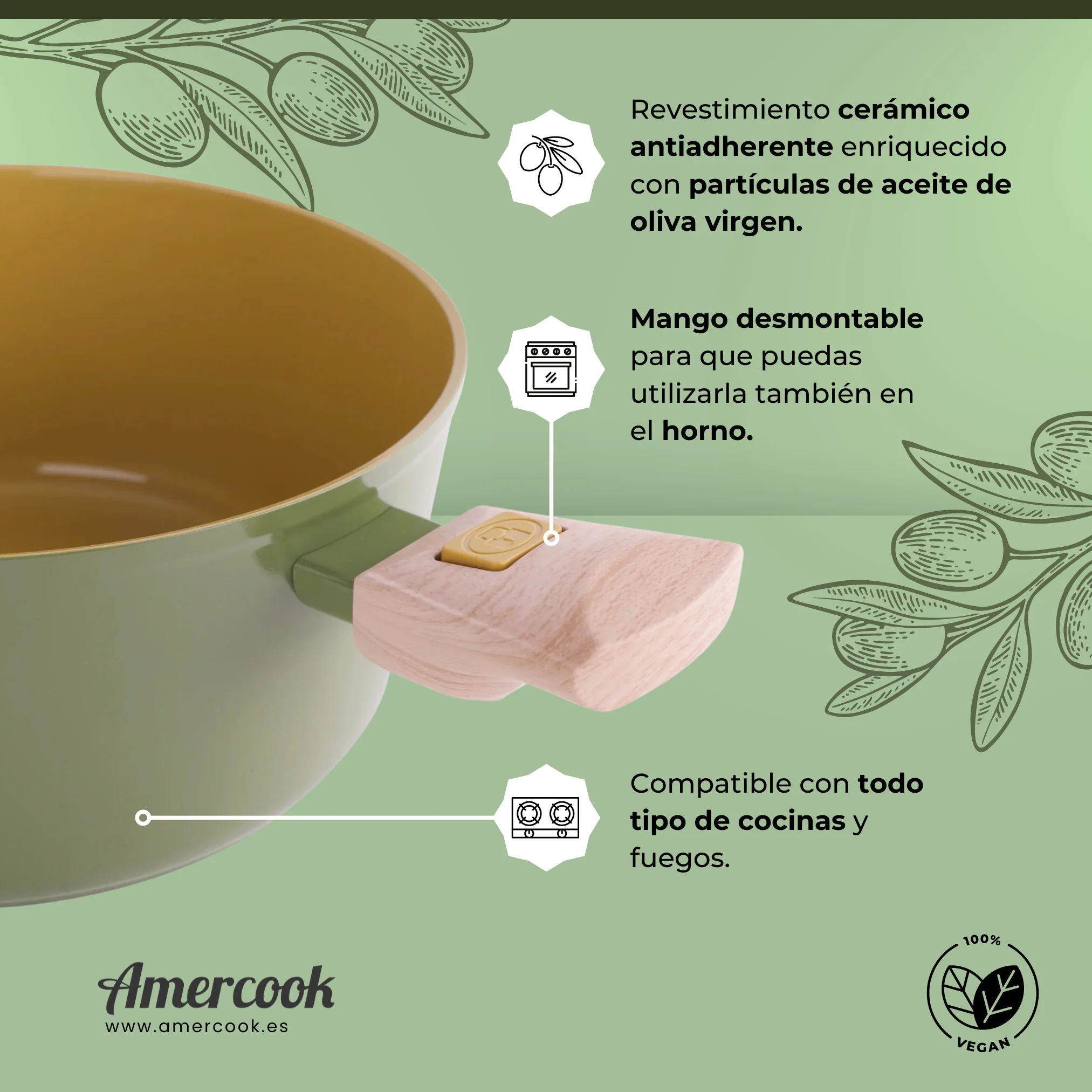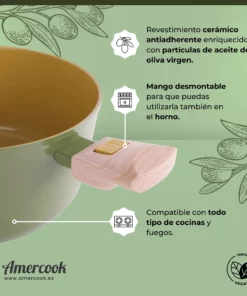 Con su acabado cerámico de aceite de oliva (AOVE) y compatible con todo tipo de cocinas, incluso inducción, nuestra cacerola es la elección ideal para cualquier chef o amante de la cocina.