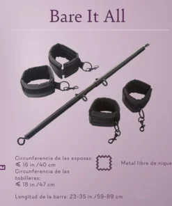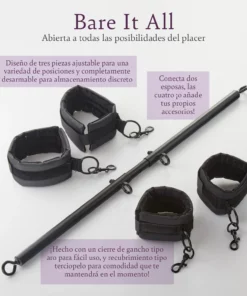 Descubre el placer sin límites con nuestro innovador juego de accesorios “Bare It All”. Diseñado para aquellos que buscan elevar su experiencia íntima, este juego combina lujuria y seguridad en cada uso. Con un diseño de barra ajustable de tres piezas, puedes explorar una amplia gama de posiciones, siempre manteniendo el control y la comodidad.