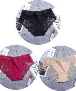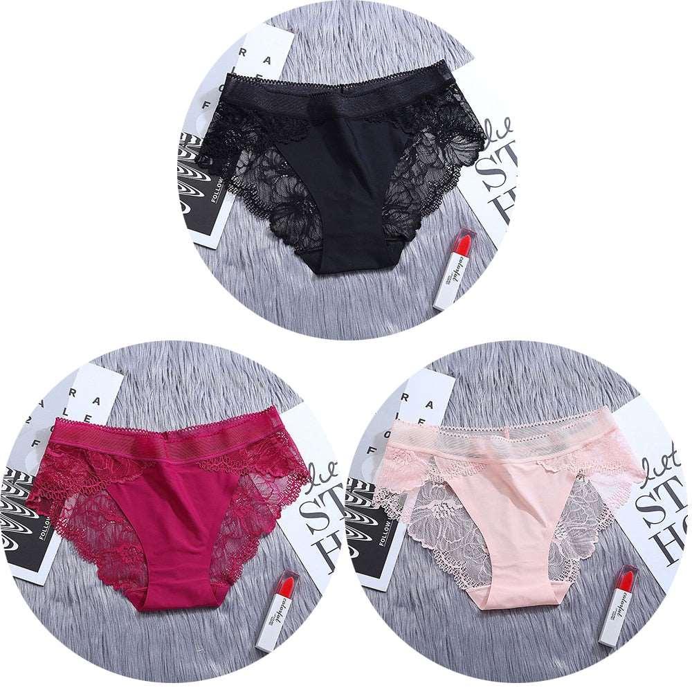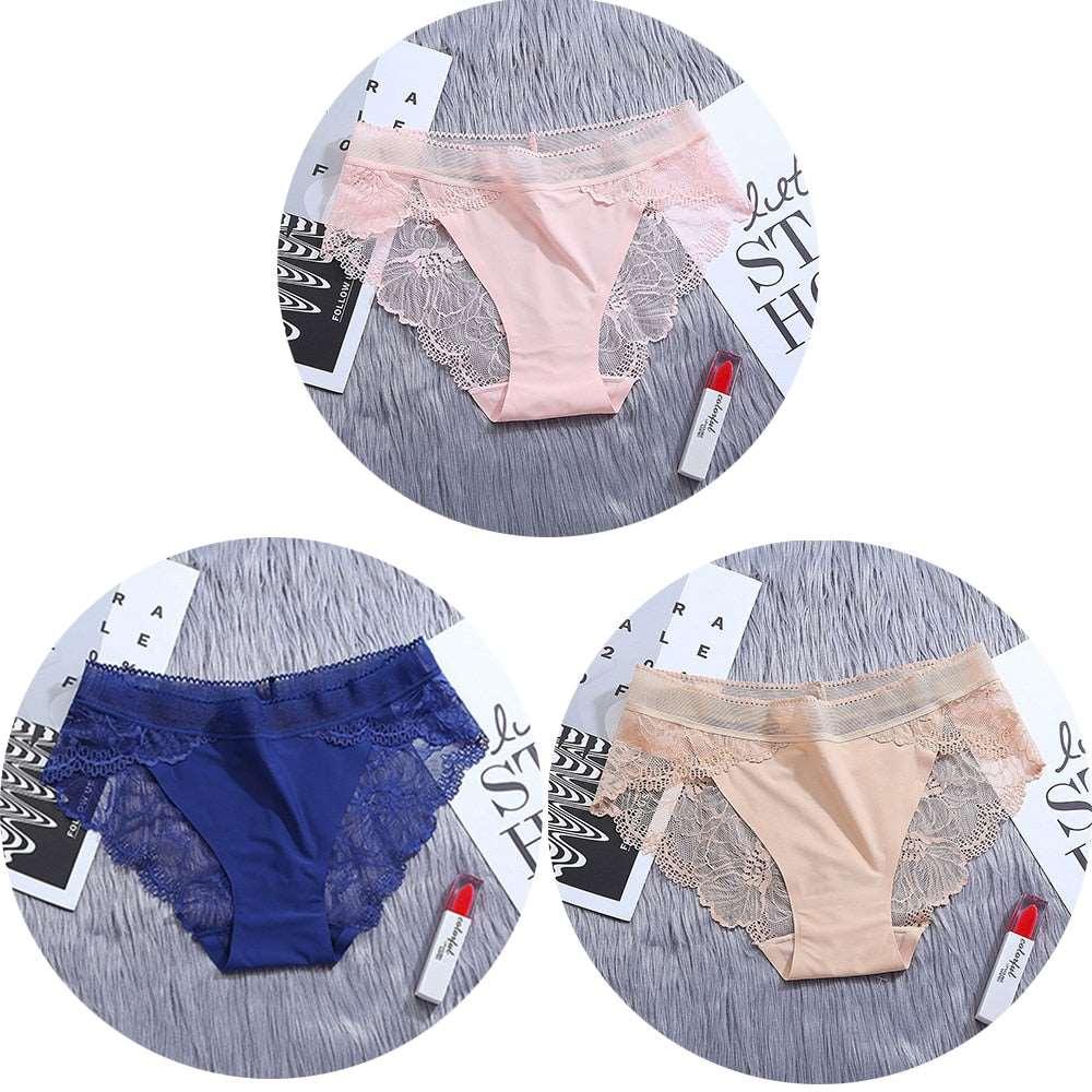 Conjunto de 3 unidades de bragas de encaje sin costuras de seda