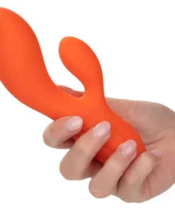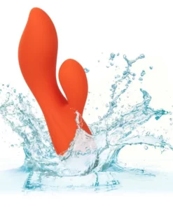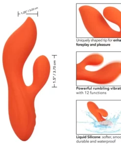 Y como un extra, cuenta con una función de bloqueo de viajes para que puedas llevarlo contigo a donde quieras, sin preocupaciones. Dale un giro a tu vida íntima con el **CALEXOTICS – STELLA DUAL TEASER NARANJA** y descubre un nuevo mundo de placer sostenible y seguro. ¡Haz de cada momento una experiencia inolvidable!