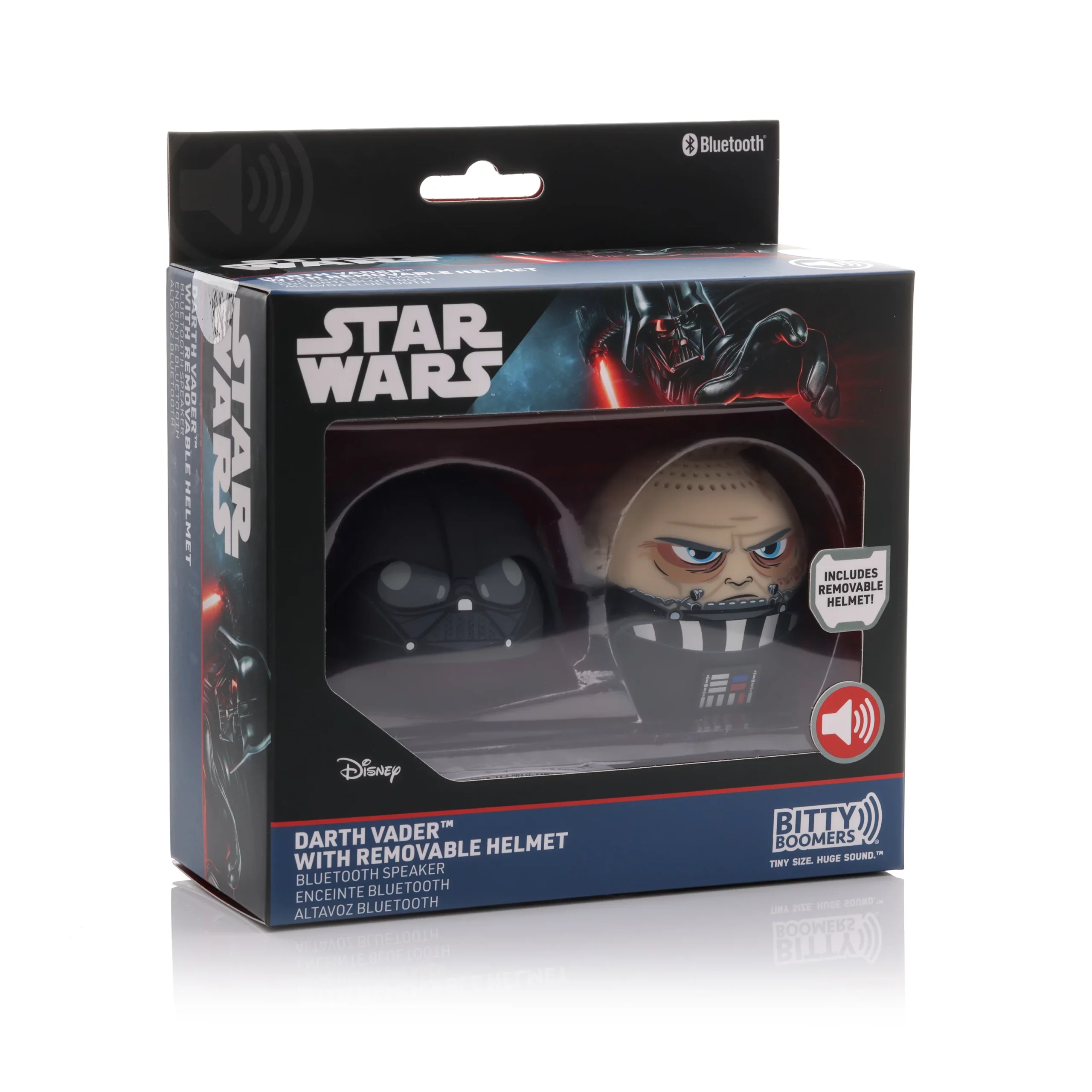 ¡Descubre el Parlante Bluetooth Portátil Darth Vader con Casco Removible de Star Bitty Boomers! Este altavoz, que cabe cómodamente en tu bolsillo, no solo es perfecto para escuchar música en cualquier lugar, sino que también es un objeto de colección que encantará a los fans de Star Wars. Diseñado con materiales eco-amigables, este parlante es seguro para ti y para el planeta.