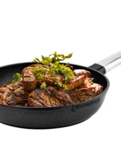 Fabricada en aluminio fundido, esta sartén distribuye el calor de manera eficiente, ahorrando energía y tiempo en la cocina. Además, es libre de PFOA, lo que significa que puedes cocinar con total tranquilidad, cuidando tu salud y la del planeta. Sus asas de acero inoxidable permanecen frías al tacto, garantizando un manejo seguro y cómodo.